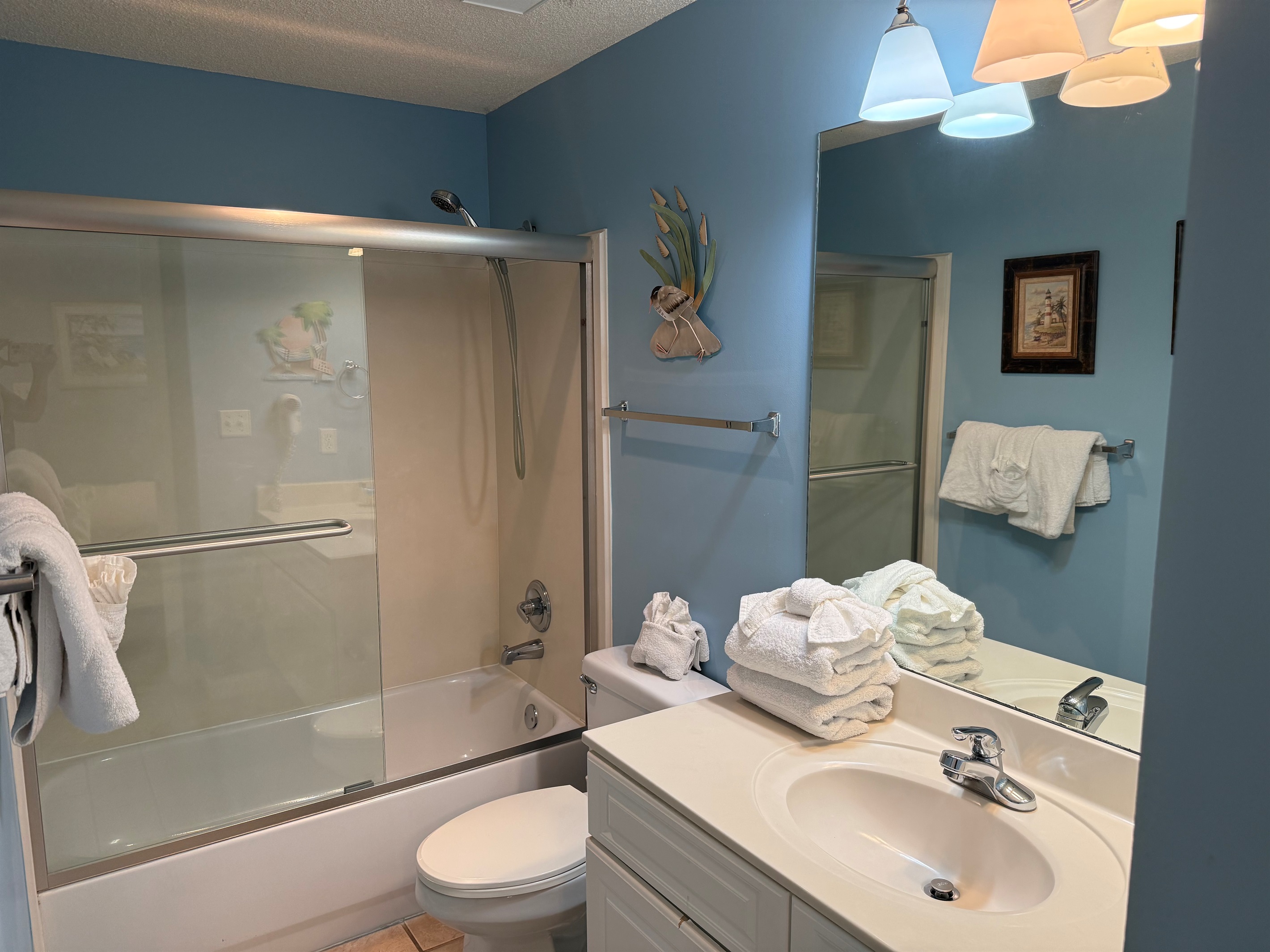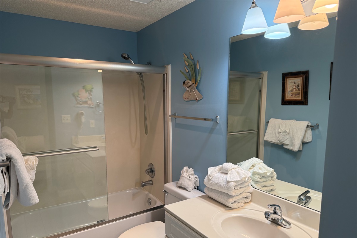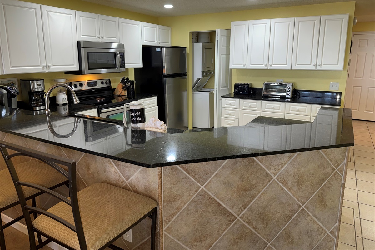 The condo is ready for your arrival and is stocked with a one-day supply of products/toiletries. The beds are made with crisp white linens, plus a set for the sleeper sofa. Bath linens are supplied. Just bring your beach towels, food and products. There is a washer/dryer in the condo, so no need to pack a lot!