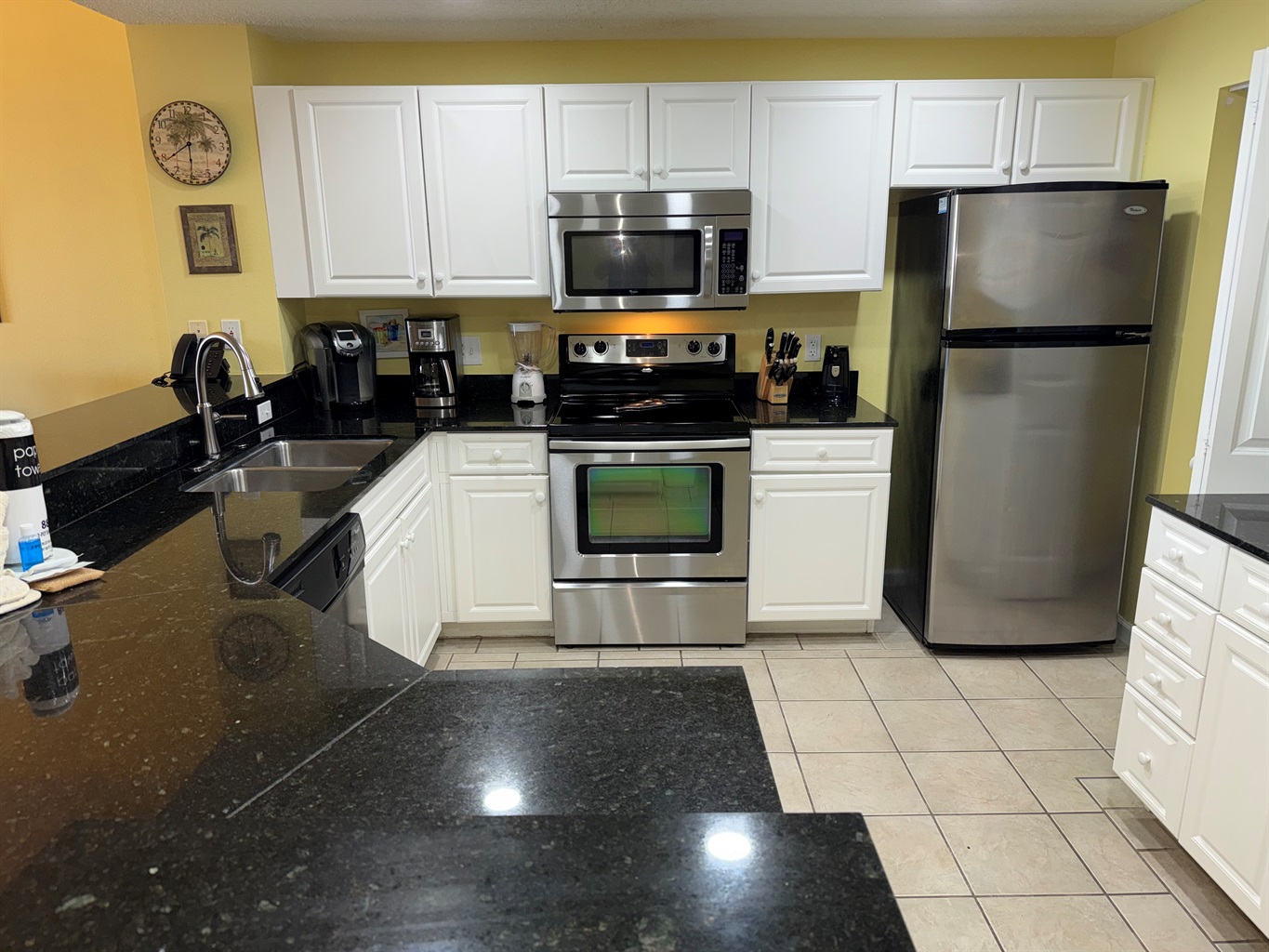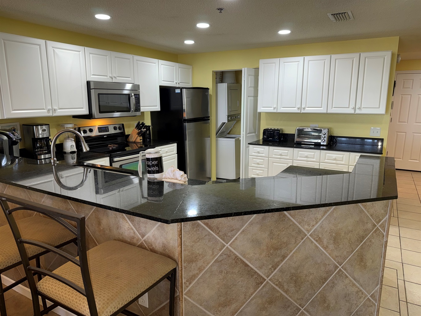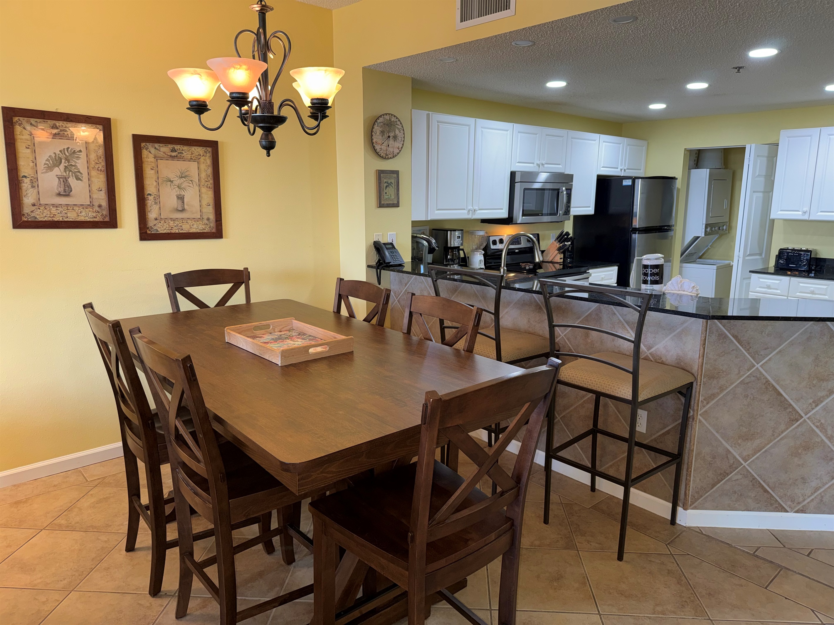 The condo is ready for your arrival and is stocked with a one-day supply of products/toiletries. The beds are made with crisp white linens, plus a set for the sleeper sofa. Bath linens are supplied. Just bring your beach towels, food and products. There is a washer/dryer in the condo, so no need to pack a lot!